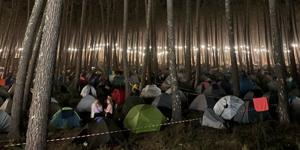 Dopo il campo mobile a Viana ci siamo spostati ad Ovar, dove tutti gli altri partecipanti si sono riuniti per i successivi cinque giorni di campo. Il campo fisso era una distesa infinita di tende all’interno di una pineta sabbiosa, in cui perdersi di notte era piuttosto facile. A Ovar ognuno sceglieva le attività da fare di giorno in giorno, tra cui attività sportive, culturali o acquatiche. Ad esempio una mattina ho fatto surf, mentre nel pomeriggio ho imparato come si fanno i tradizionali pastéis de nata. Insomma, di tutto e di più.